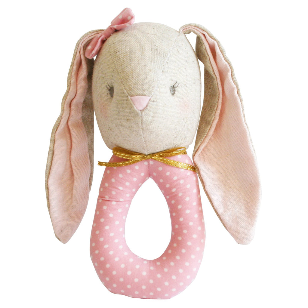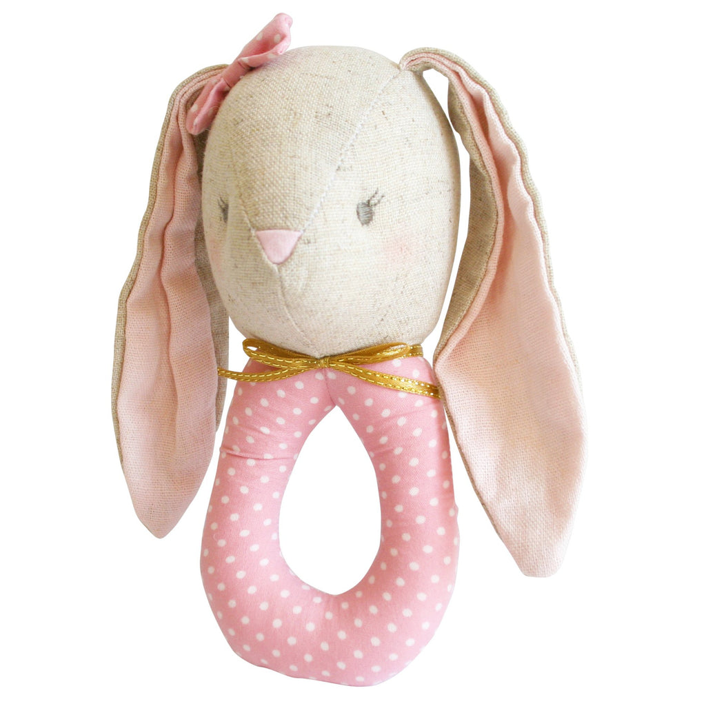 A happy little bunny grab rattle, perfect for chubby little hands. Suitable from 3 months.