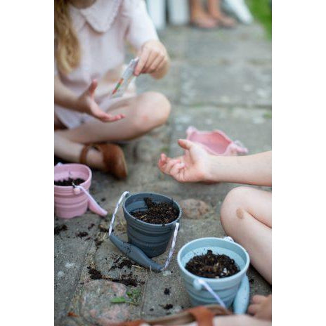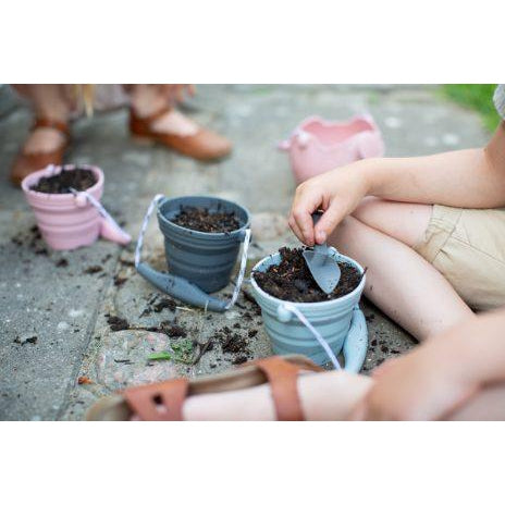 Most kids love to plant. Scrunch knows that and for than reason they have designed this set with a collapsible bucket and matching little spade. The bucket folds in another way than the big Scrunch-bucket – it folds into itself.