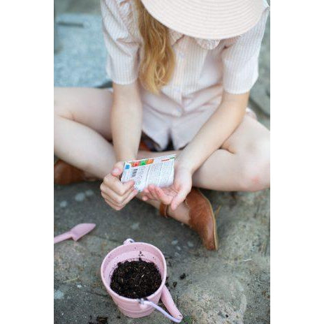 There is room for a little flower, a tomato plant, small seeds that can grow big or whatever would work for the child that gets the set. The gardening set works very well together with the watering can and it looks very cute with several small garden buckets next to each other.