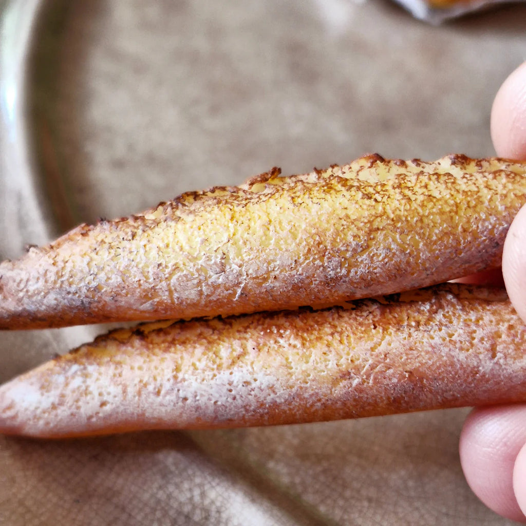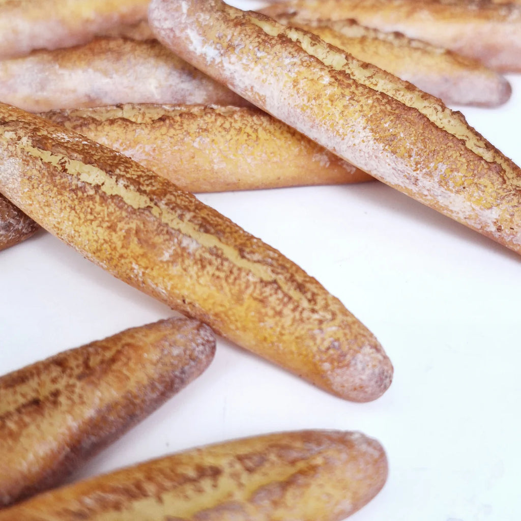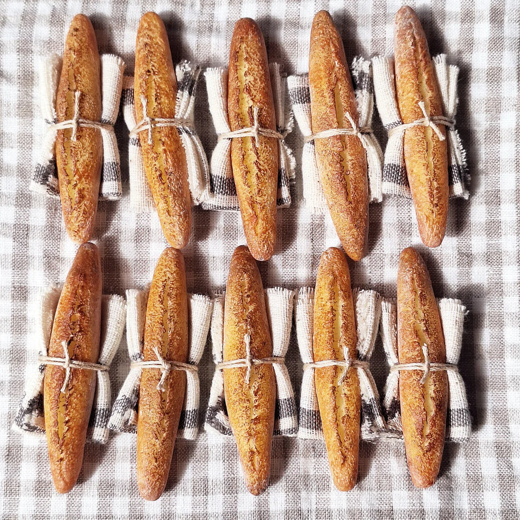 Rustic miniature baguette, so real that you could almost feel the crust and hear the 'hollow' sound of a freshly and perfectly baked baguette.