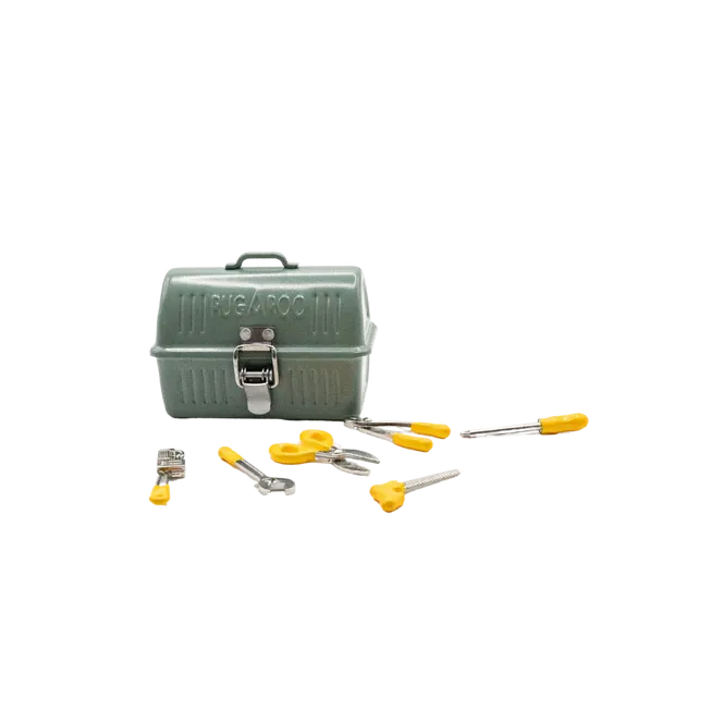 This ripper miniature toolbox is straight outta the 1950s for inspo—it’s tough as nails, super cute, and surprisingly roomy inside. It comes packed with six tiny tools, each with moving parts for extra fun, but you can also use it as a mini suitcase, a cheeky Rugaroo lunchbox, or even to stash your smallest treasures!