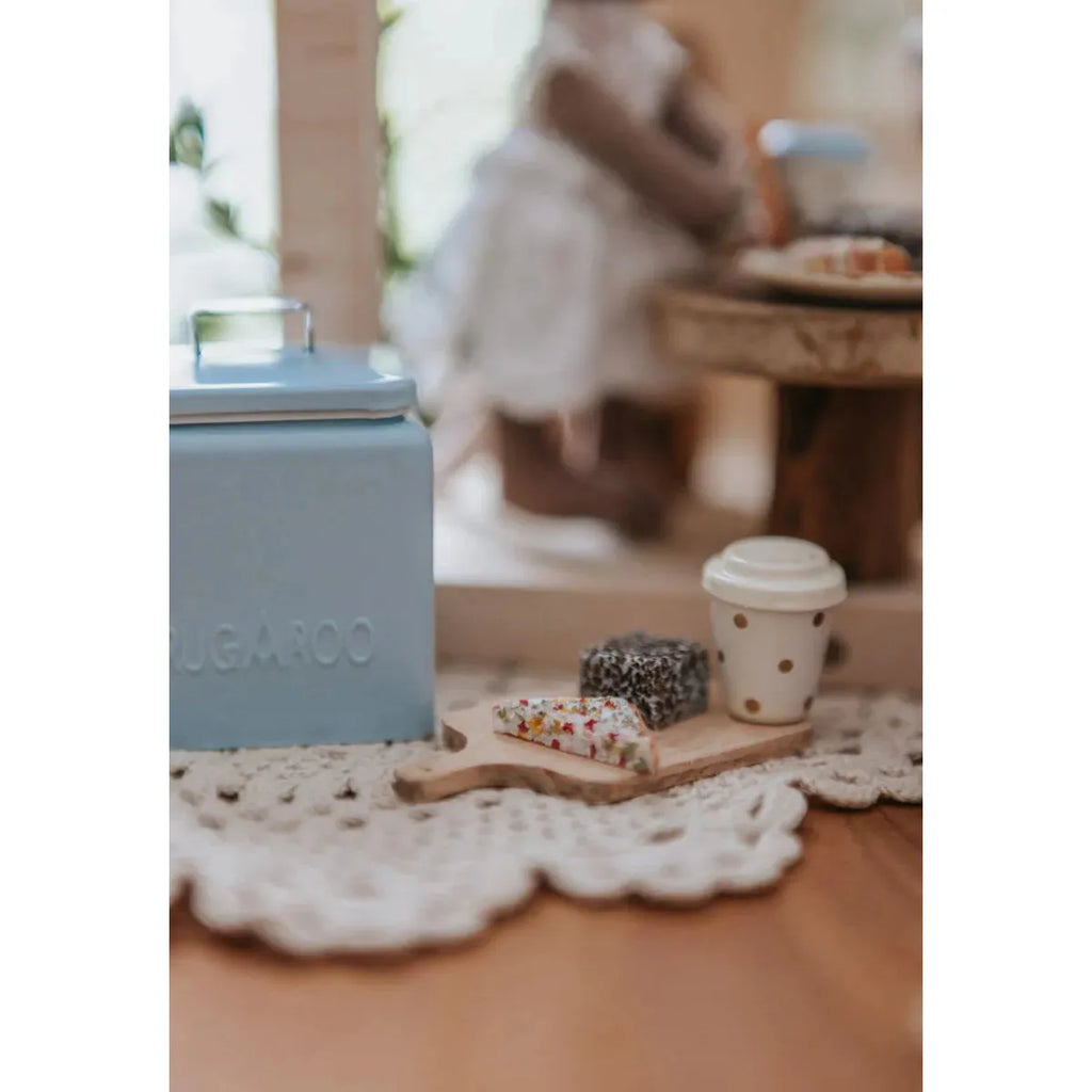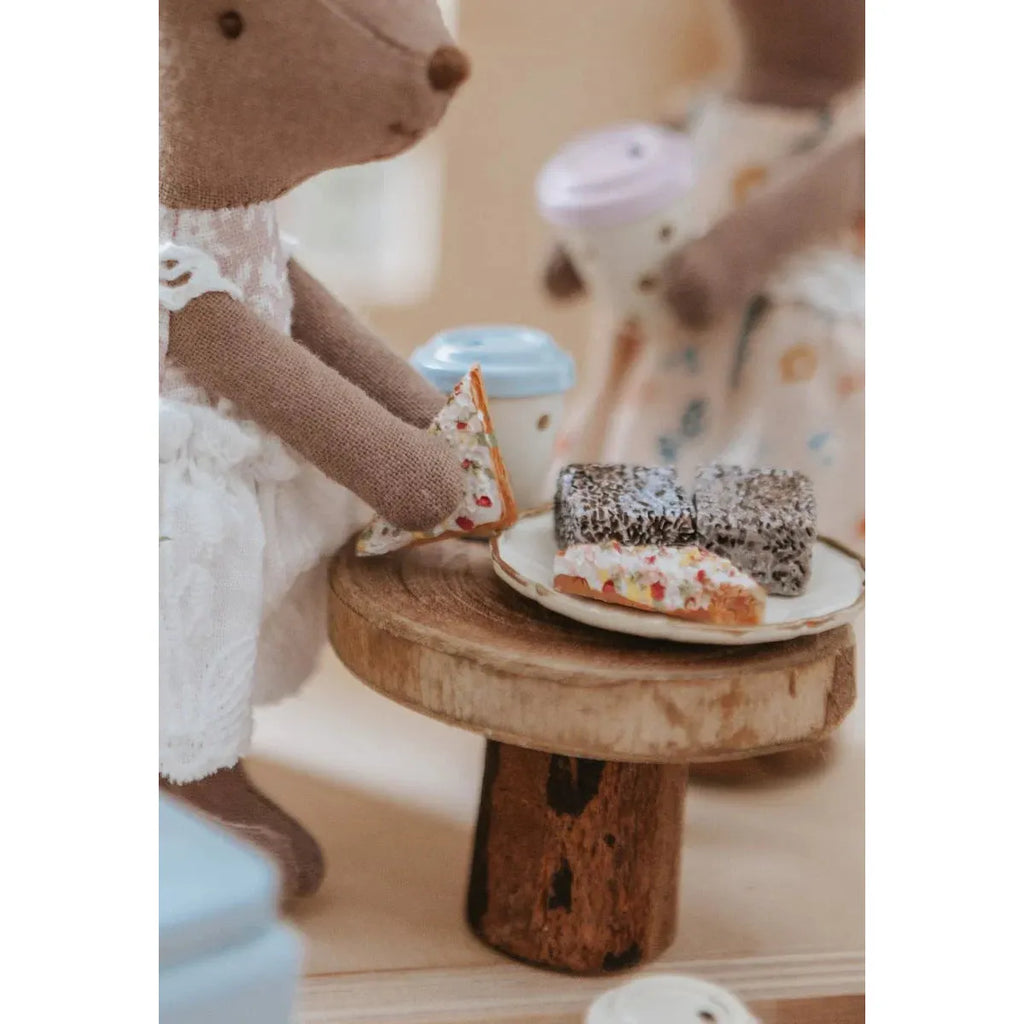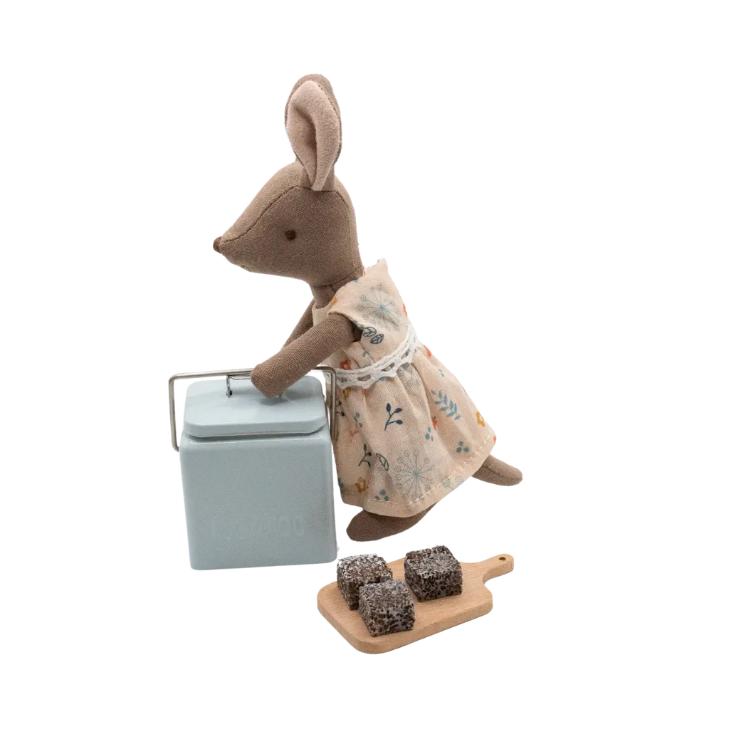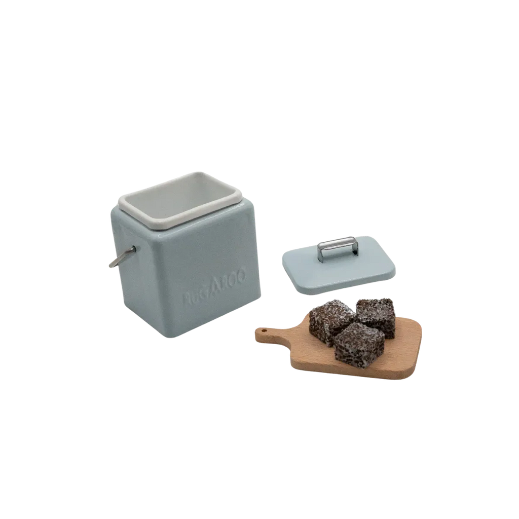 Comes with a blue esky, a cutting board, and three adorable miniature lamingtons.